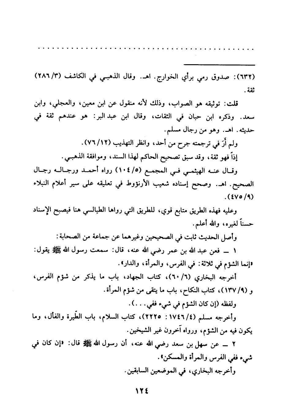 = (632): صدوق رمي برأي الخوارج. اهـ. وقال الذهبي في الكاشف (3/ 286) ثقة.
