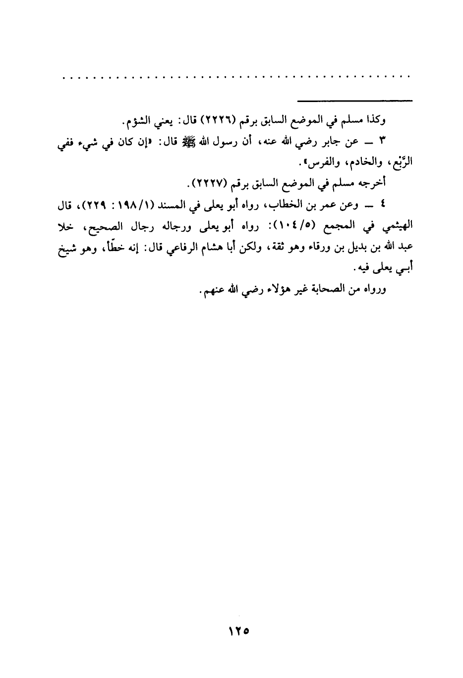 3 - عَنْ جَابِرٍ رَضِيَ اللَّهُ عَنْهُ، أَنَّ رَسُولَ الله -صلى الله عليه وسلم- قال: "إن كان في شيء ففي الرَّبع، والخادم، والفرس".