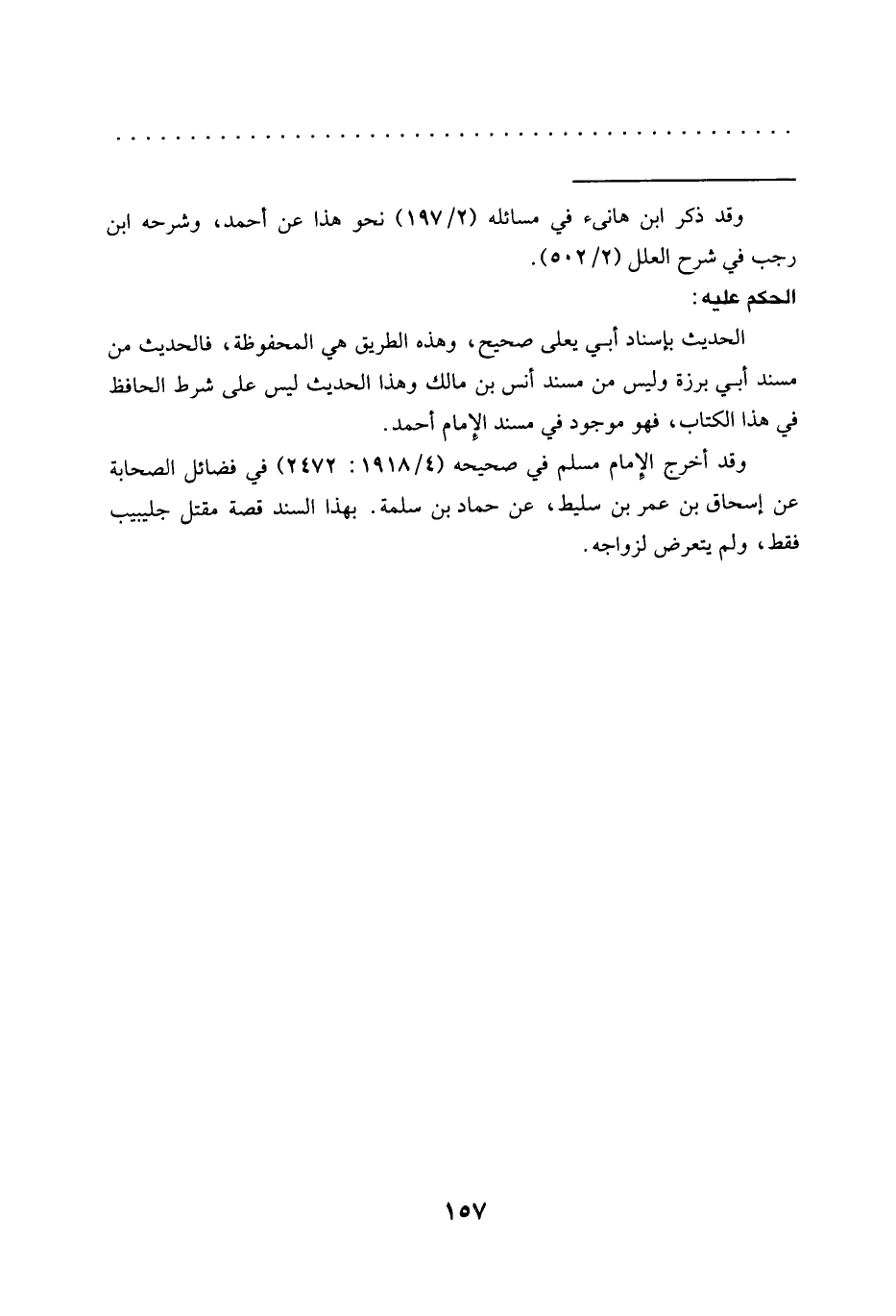 وقد أخرج الإِمام مسلم في صحيحه (4/ 1918: 2472) في فضائل الصحابة عن إسحاق بن عمر بن سليط، عن حماد بن سلمة. بهذا السند قصة مقتل جليبيب فقط، ولم يتعرض لزواجه.