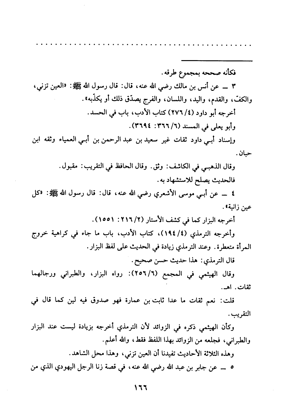 3 - عَنْ أَنَسِ بْنِ مَالِكٍ رَضِيَ اللَّهُ عَنْهُ، قَالَ: قَالَ رَسُولُ اللَّهِ -صَلَّى اللَّهُ عَلَيْهِ وسلم-: "العين تزني، والكفّ، وَالْقَدَمُ، وَالْيَدُ، وَاللِّسَانُ، وَالْفَرْجُ يُصَدِّقُ ذَلِكَ أَوْ يكذّبه".