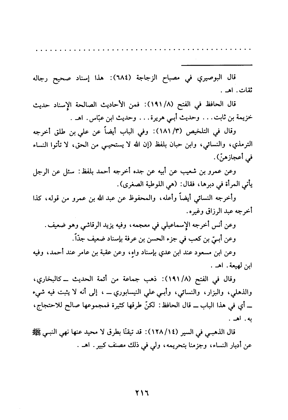 وقال في الفتح (8/ 191): ذهب جماعة من أئمة الحديث -كالبخاري، والذهلي، والبزار، والنسائي، وأبي علي النيسابوري-، إلى أنه لا يثبت فيه شيء -أي في هذا الباب- قال الحافظ: لكنّ طرقهاكثيرة فمجموعها صالح للاحتجاج، به. اهـ.