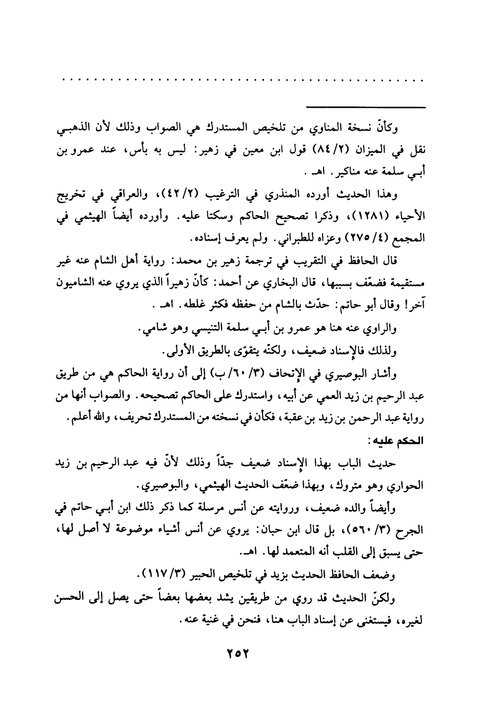 = وكأنّ نسخة المناوي من تلخيص المستدرك هي الصواب وذلك لأن الذهبي نقل في الميزان (2/ 84) قول ابن معين في زهير: ليس به بأس، عند عمرو بن أبى سلمة عنه مناكير. اهـ.