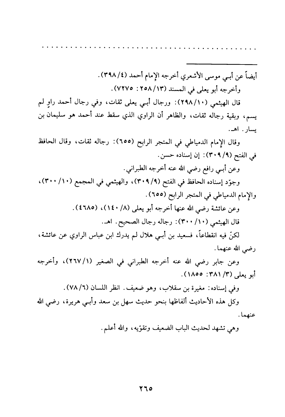 قال الهيثمي (10/ 298): ورجال أبي يعلى ثقات، وفي رجال أحمد راوٍ لم يسم، وبقية رجاله ثقات، والظاهر أن الراوي الذي سقط عند أحمد هو سليمان بن يسار. اهـ.