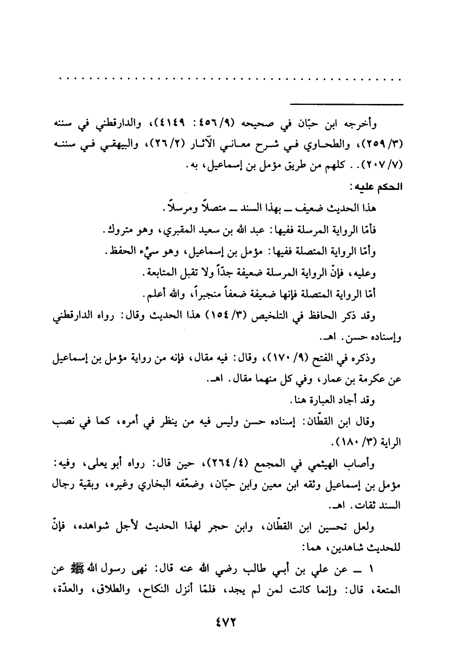 = وأخرجه ابن حبّان في صحيحه (9/ 456: 4149)، والدارقطني في سننه (3/ 259)، والطحاوي في شرح معاني الآثار (2/ 26)، والبيهقي في سننه (7/ 207) .. كلهم من طريق مؤمل بن إسماعيل، به.