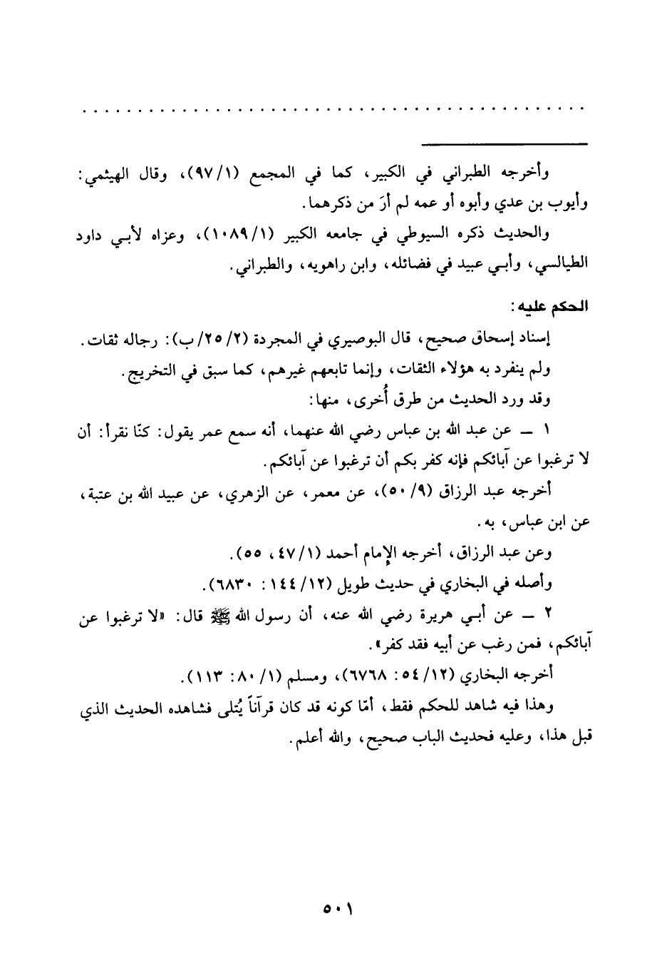 1 - عن عبد الله بن عباس رضي الله عنهما، أنه سمع عمر يقول: كنّا نقرأ: أَنْ لَا تَرْغَبُوا عَنْ آبَائِكُمْ فَإِنَّهُ كُفْرٌ بكم أن ترغبوا عن آبائكم.