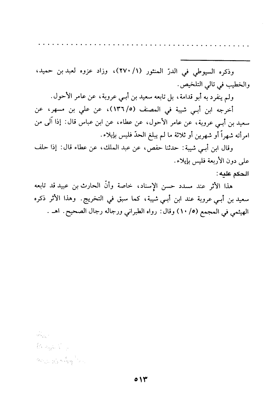 هذا الأثر عند مسدد حسن الإسناد، خاصة وأنّ الحارث بن عبيد قد تابعه سعيد بن أبي عروبة عند ابن أبي شيبة، كما سبق في التخريج. وهذا الأثر ذكره الهيثمي في المجمع (5/ 10) وقال: رواه الطبراني ورجاله رجال الصحيح. اهـ.