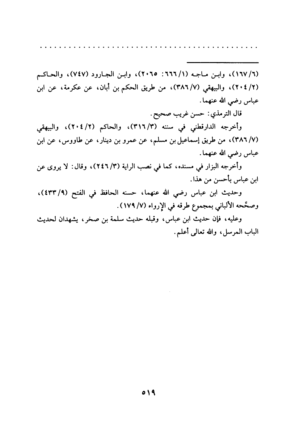 وعليه، فإن حديث ابن عباس، وقبله حديث سلمة بن صخر، يشهدان لحديث الباب المرسل، والله تعالى أعلم.