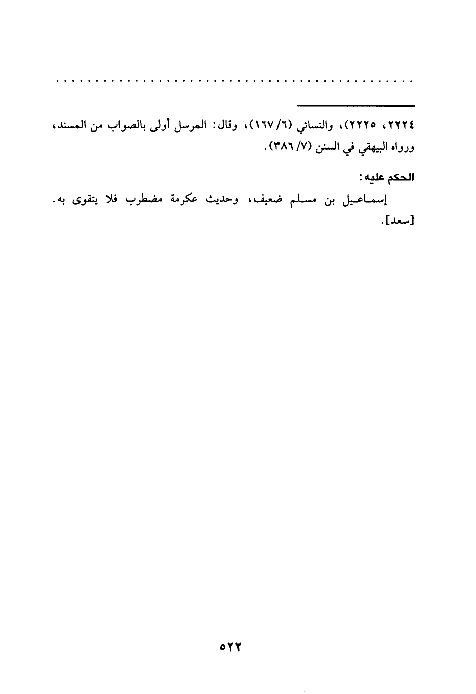 = 2224، 2225)، والنسائي (6/ 167)، وقال: المرسل أولى بالصواب من المسند، ورواه البيهقي في السنن (7/ 386).