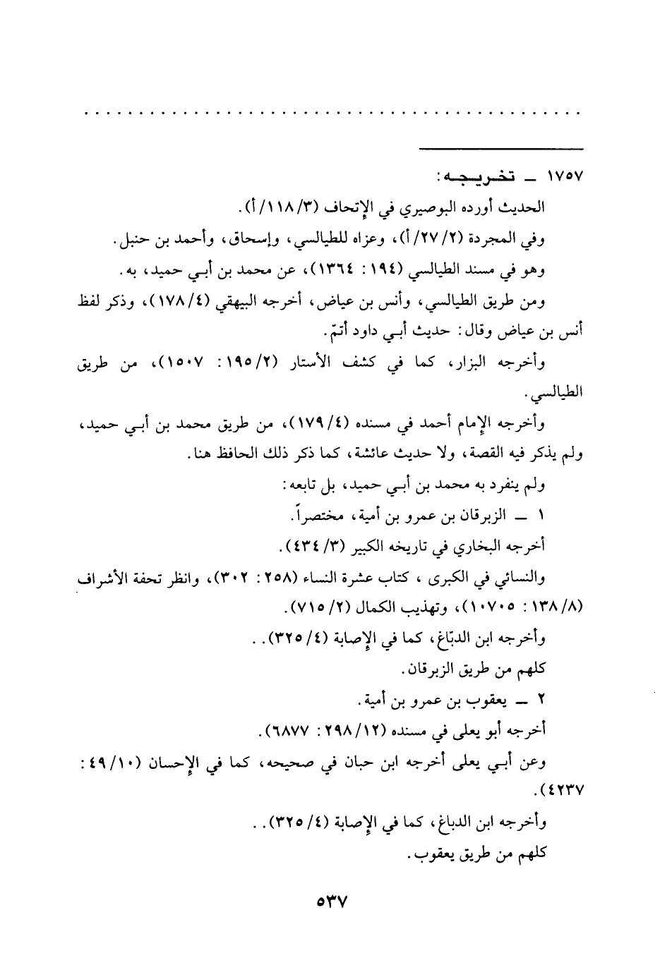 وأخرجه الإِمام أحمد في مسنده (4/ 179)، من طريق محمد بن أبي حميد، ولم يذكر فيه القصة، ولا حديث عائشة، كما ذكر ذلك الحافظ هنا.