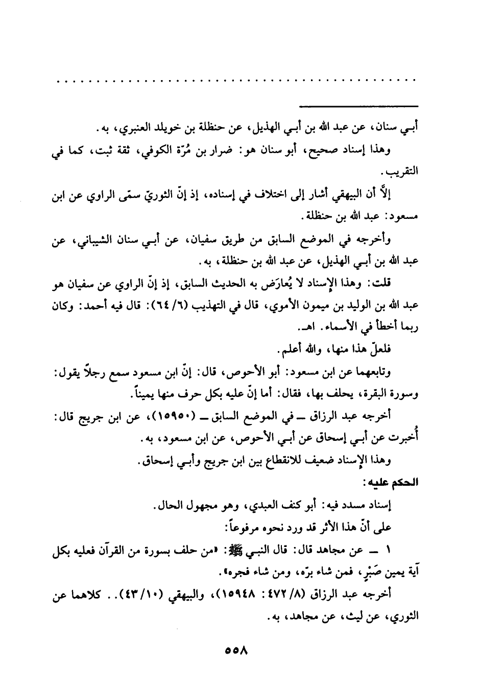 وتابعهما عن ابن مسعود: أبو الأحوص، قال: إنّ ابن مسعود سمع رجلًا يقول: وسورة البقرة، يحلف بها، فقال: أما إن عليه بكل حرف منها يمينًا.
