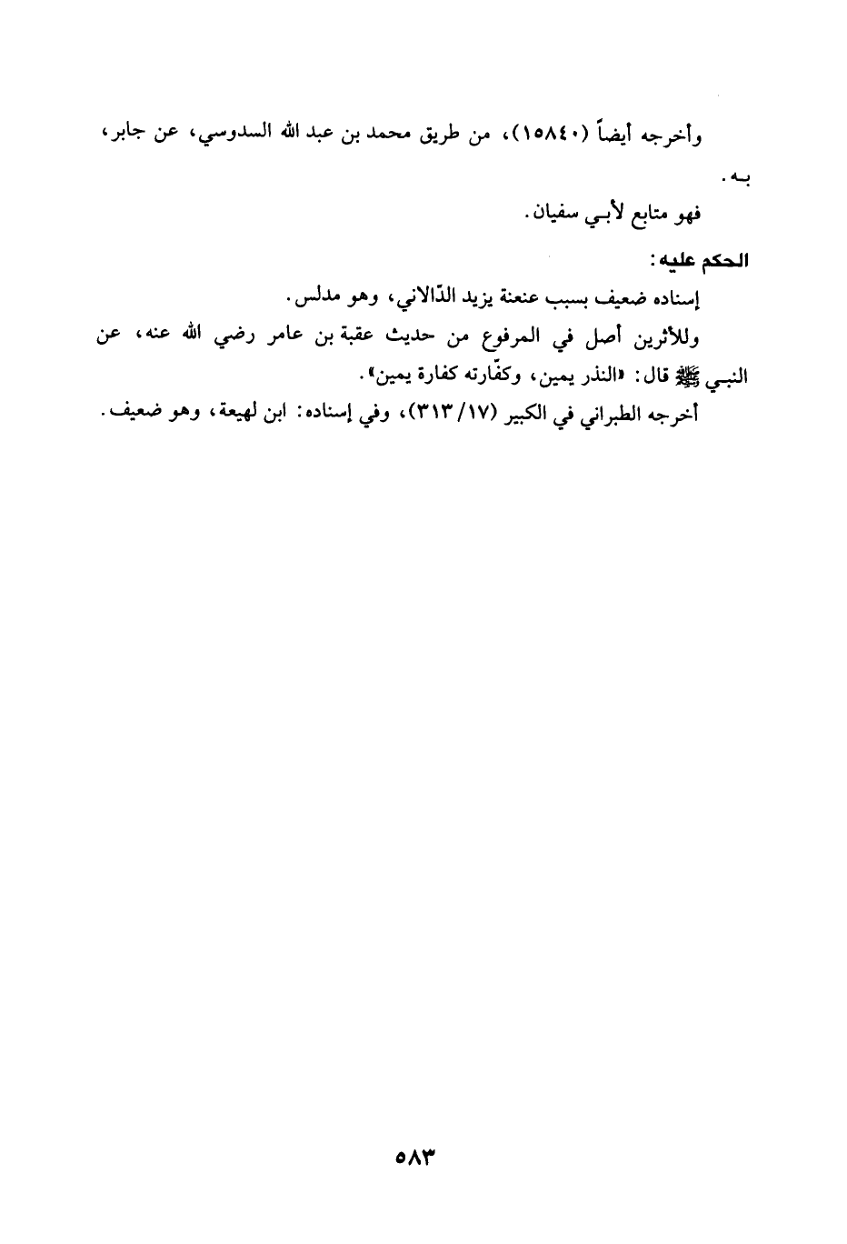 وأخرجه أيضًا (15840)، من طريق محمد بن عبد الله السدوسي، عن جابر، به.