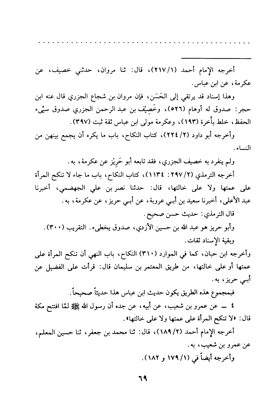أخرجه الترمذي (2/ 297: 1134)، كتاب النكاح، باب ما جاء لا تُنْكَحُ الْمَرْأَةُ عَلَى عَمَّتِهَا وَلَا عَلَى خَالَتِهَا، قال: حدثنا نصر بن علي الجهضمي، أخبرنا عبد الأعلى، أخبرنا سعيد بن أبي عروبة، عن أبي حريز، عن عكرمة، به.