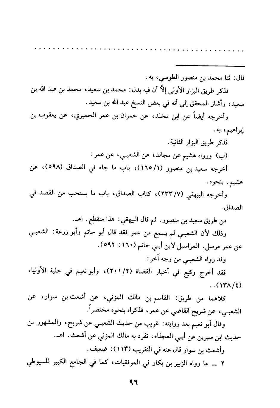 (ب) ورواه هشيم عن مجالد، عن الشعبي، عن عمر: