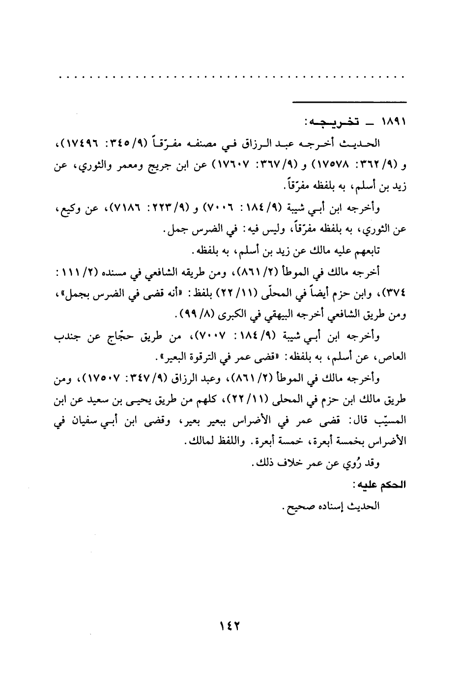 الحديث أخرجه عبد الرزاق في مصنفه مفرّقًا (9/ 345: 17496)، و (9/ 362: 17578) و (9/ 367: 17607) عن ابن جريج ومعمر والثوري، عن زيد بن أسلم، به بلفظه مفرّقًا.
