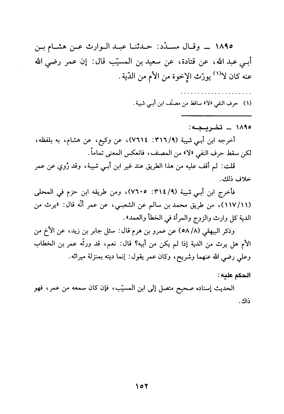 1895 - وَقَالَ مُسَدَّدٌ حَدَّثَنَا عَبْدُ الْوَارِثِ عَنْ هِشَامِ بْنِ أَبِي عَبْدِ اللَّهِ عَنْ قَتَادَةَ عَنْ سَعِيدِ بن المسيب قال أن عمر رَضِيَ الله عَنْه §كَانَ لَا يُورِّثُ الْإِخْوَةَ مِنَ الْأُمِّ مِنَ الدِّيَةِ