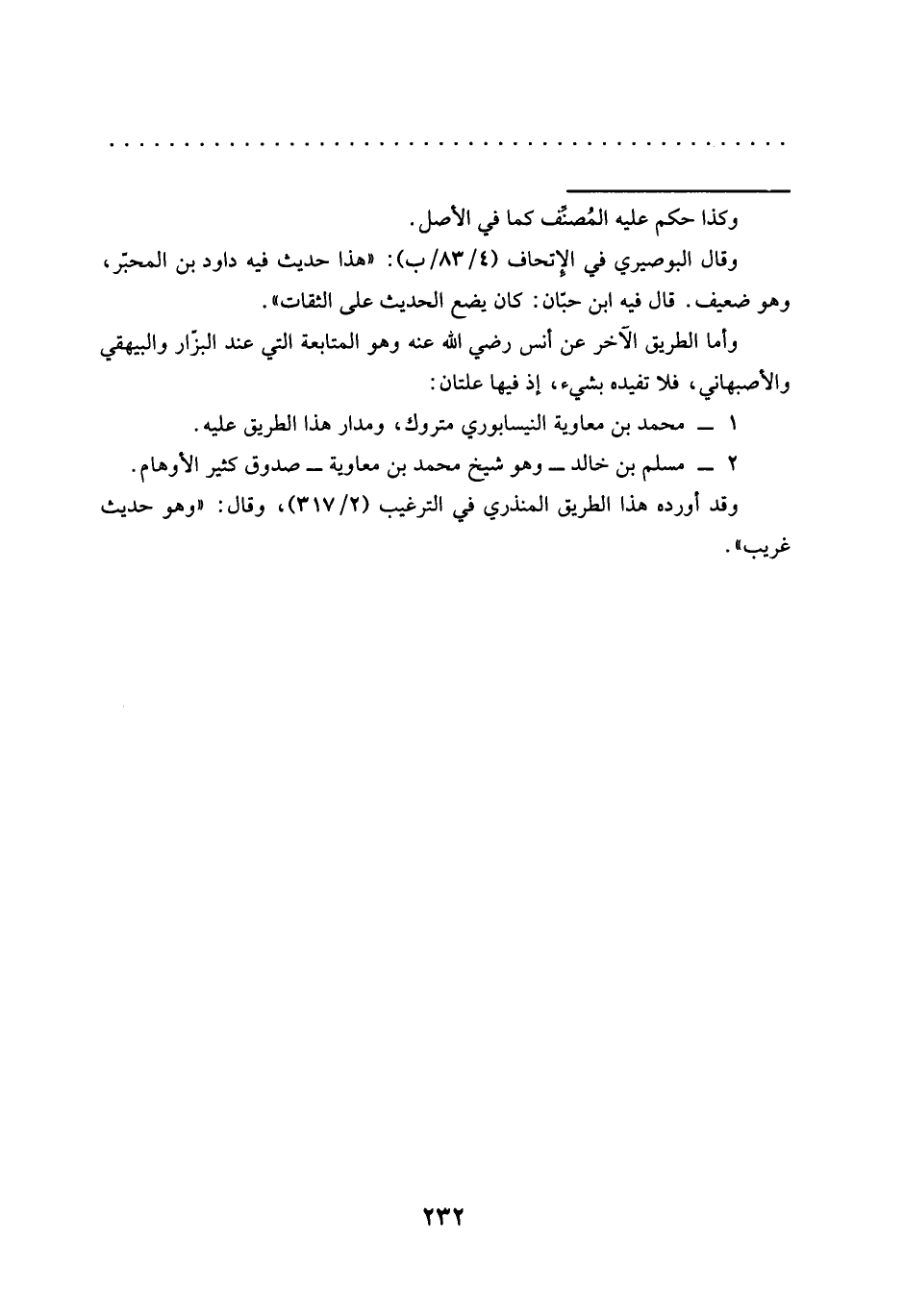 1 - محمَّد بن معاوية النيسابوري متروك، ومدار هذا الطريق عليه.