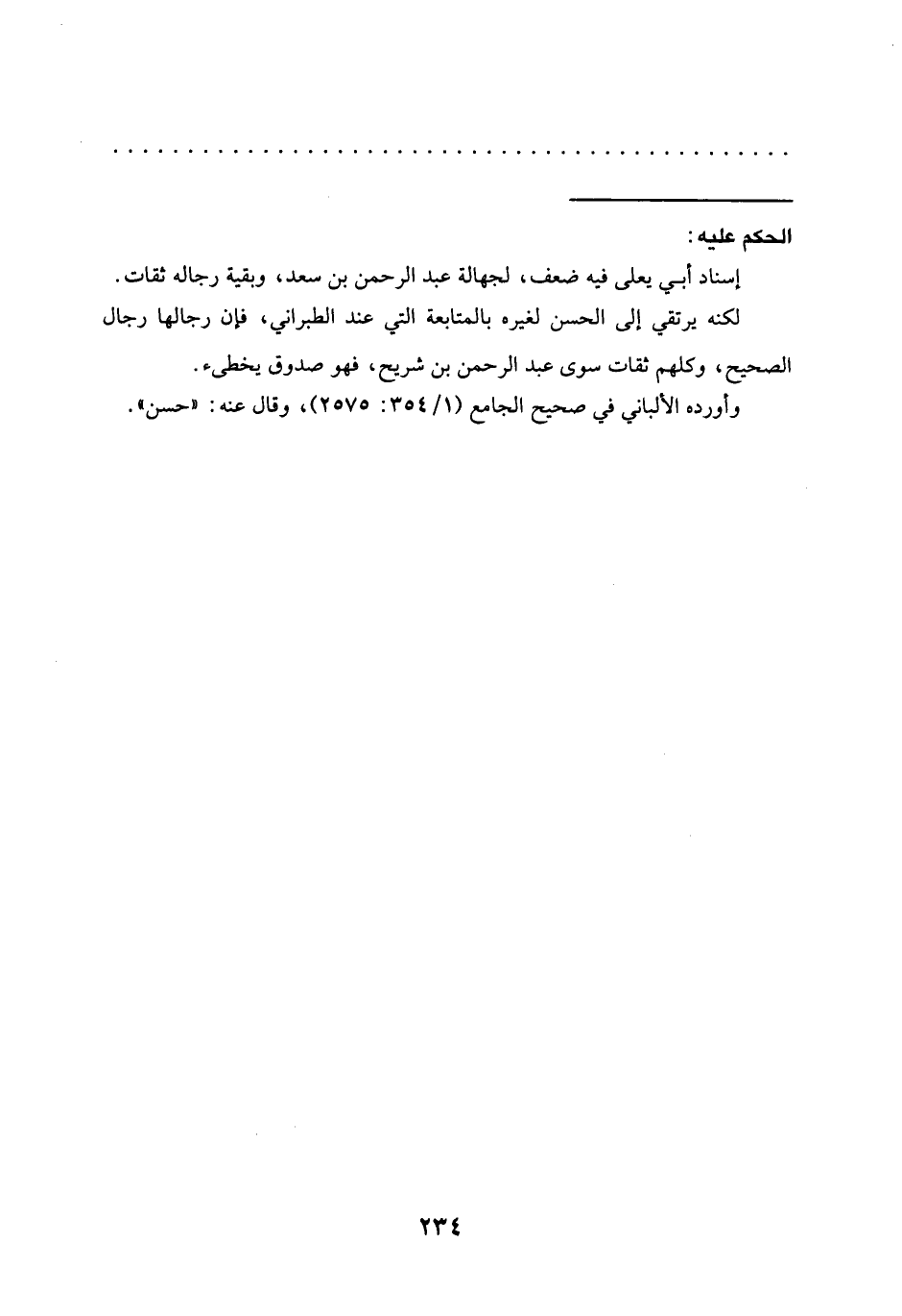لكنه يرتقي إلى الحسن لغيره بالمتابعة التي عند الطبراني، فإن رجالها رجال الصحيح، وكلهم ثقات سوى عبد الرحمن بن شريح، فهو صدوق يخطئ.