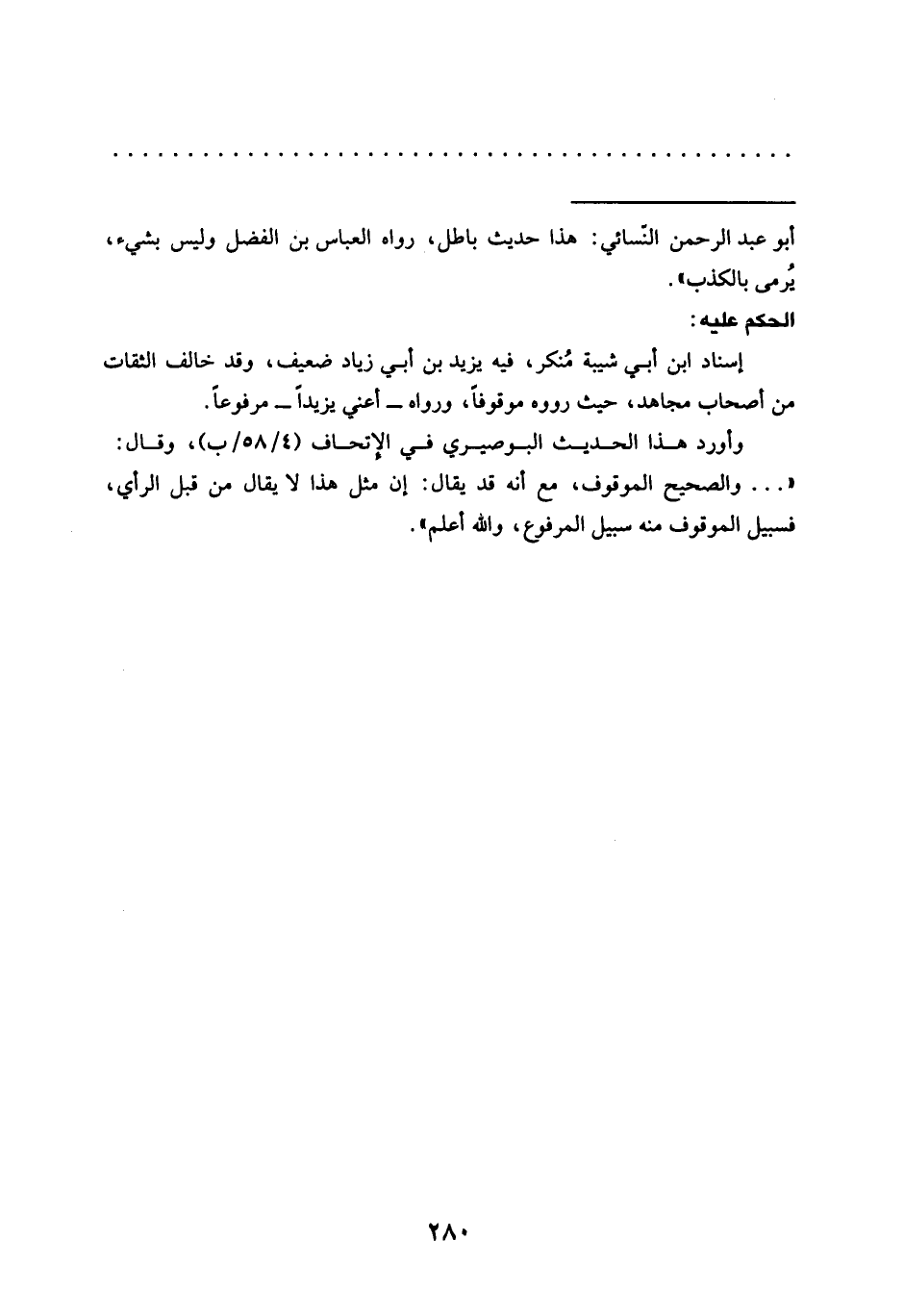 = أبو عبد الرحمن النّسائي: هذا حديث باطل، رواه العباس بن الفضل وليس بشيء، يُرمي بالكذب".