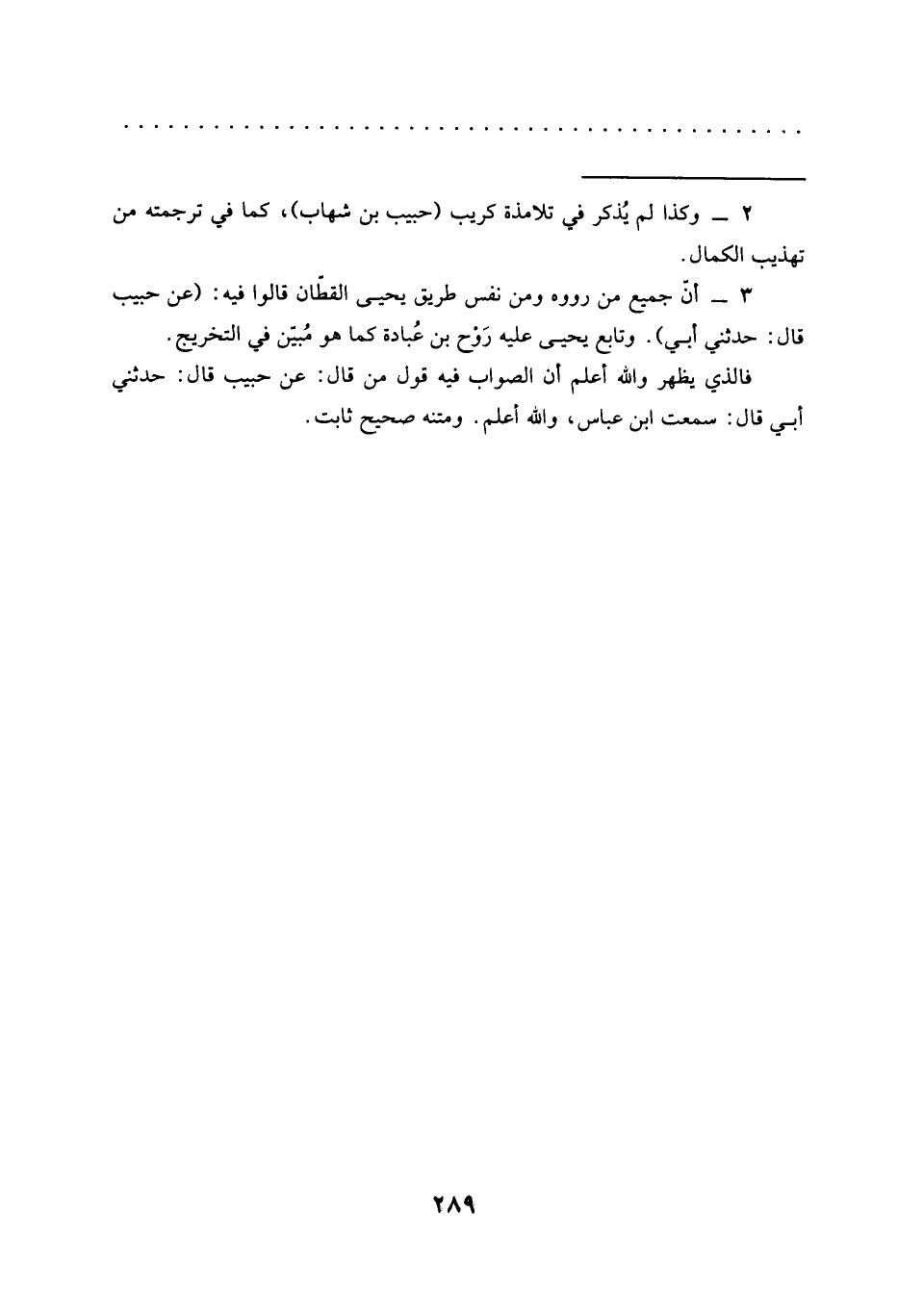 = 2 - وكذا لم يُذكر في تلامذة كريب (حبيب بن شهاب)، كما في ترجمته من تهذيب الكمال.
