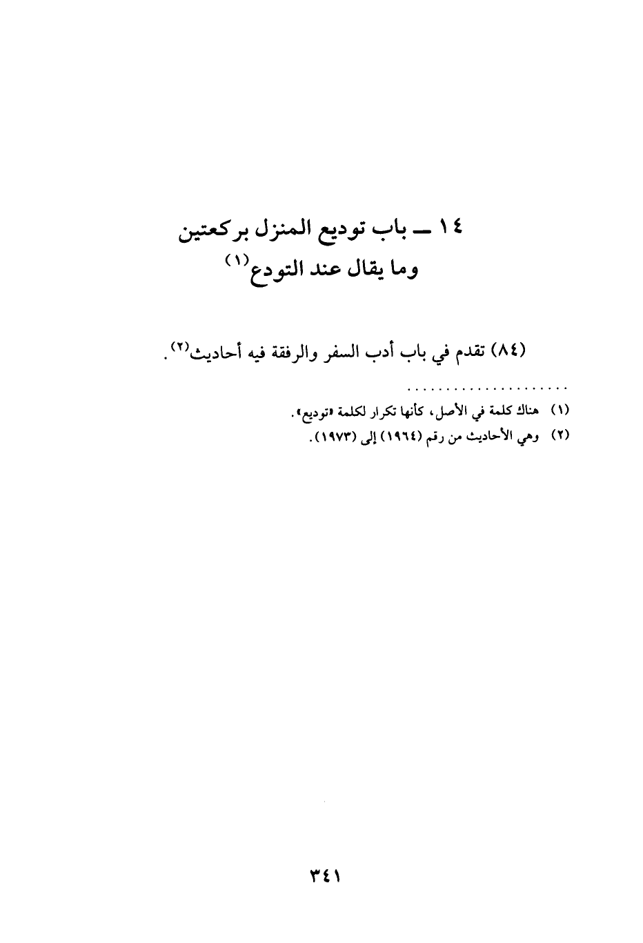 (14 - بَابُ تَوْدِيعِ الْمَنْزِلِ بِرَكْعَتَيْنِ وَمَا يُقَالُ عِنْدَ التَّوَدُّعِ)