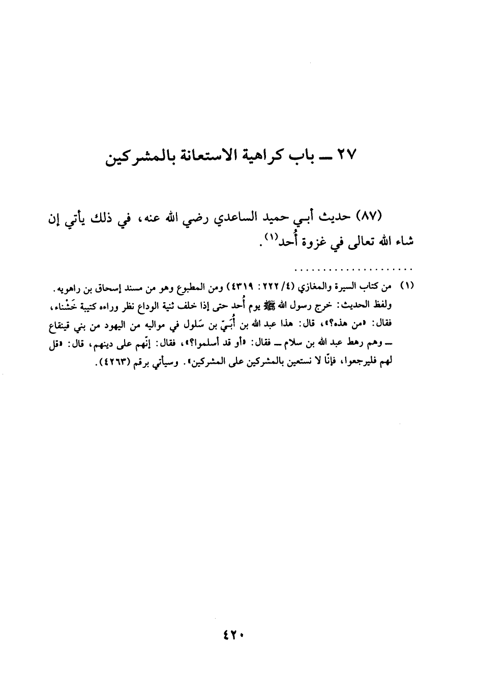 (27 - بَابُ كَرَاهِيَةِ الِاسْتِعَانَةِ بِالْمُشْرِكِينَ)