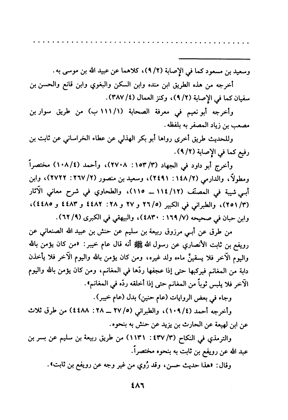 وقال: "هذا حديث حسن، وقد رُوي من غير وجه عن رويفع بن ثابت". =