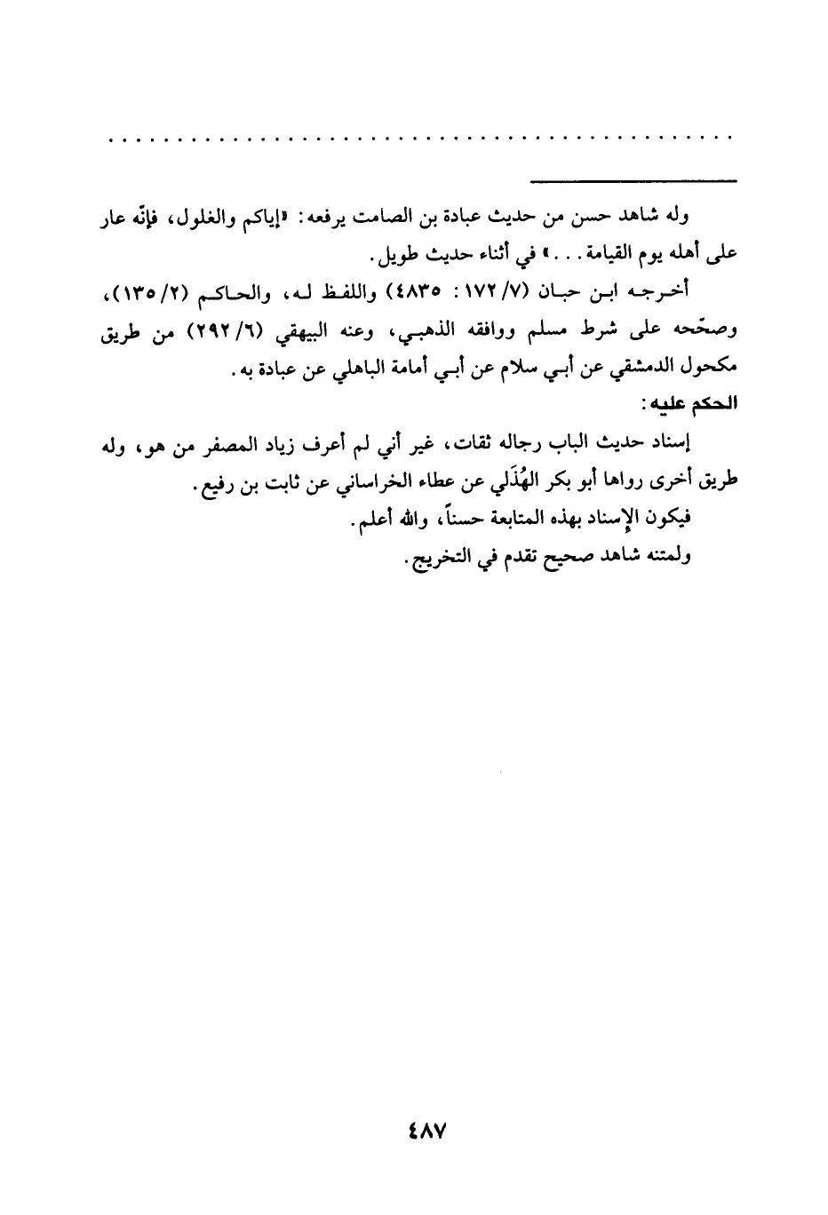 = وله شاهد حسن من حديث عبادة بن الصامت يرفعه: "إياكم والغلول، فإنّه عار على أهله يوم القيامة ... " في أثناء حديث طويل.