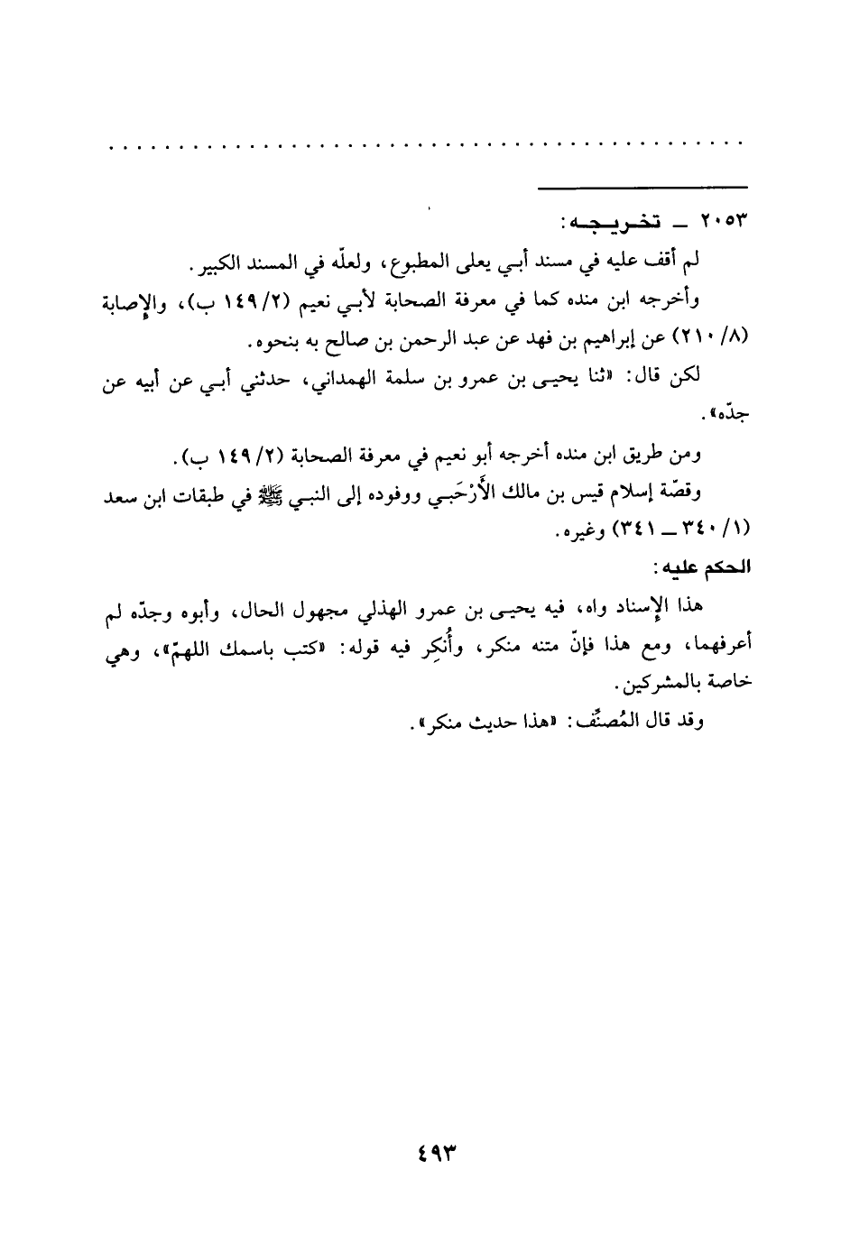 لكن قال: "ثنا يحيى بن عمرو بن سلمة الهمداني، حدثني أبي عن أبيه عن جدّه".