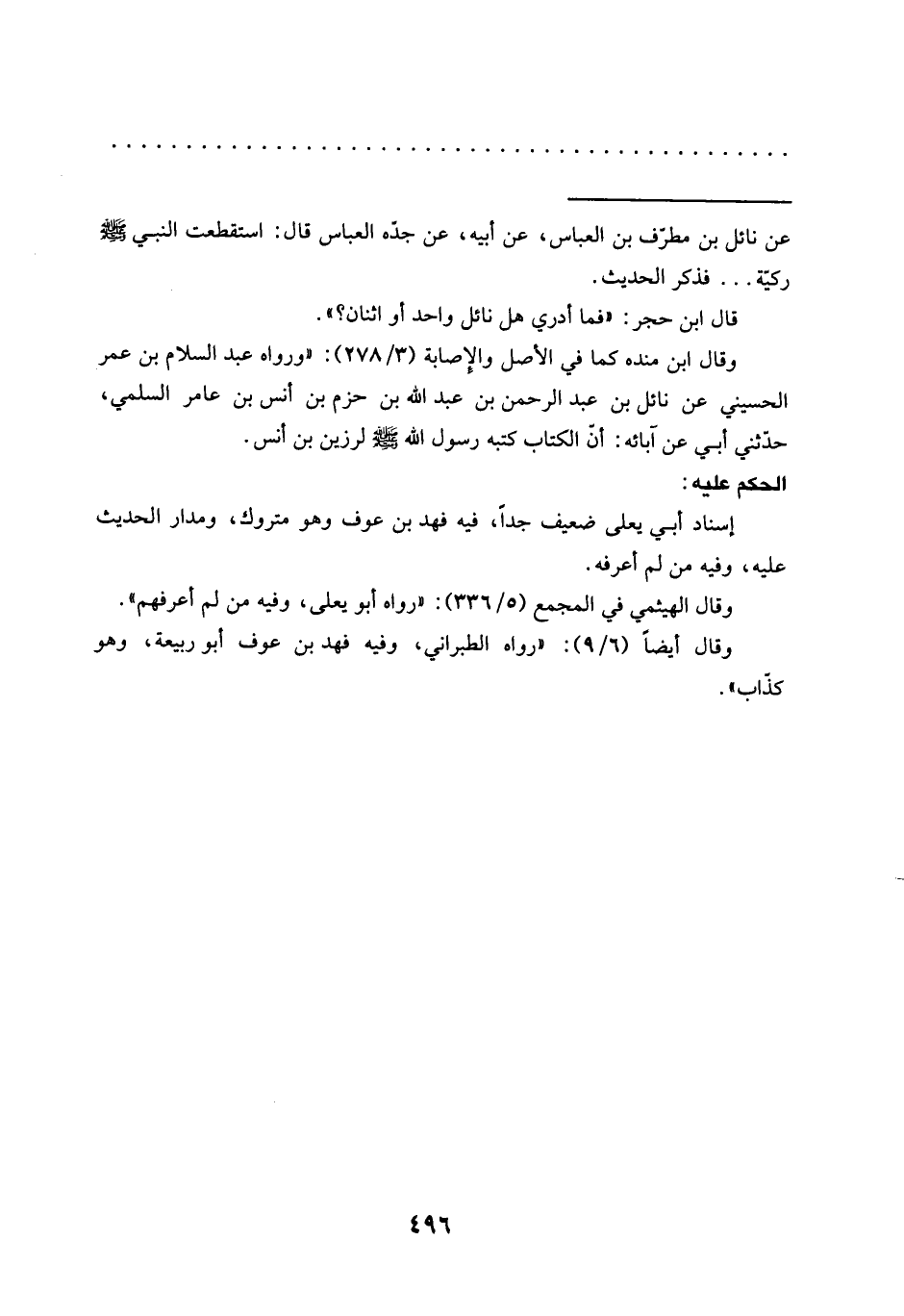 = عَنْ نَائِلِ بْنِ مُطَرِّفِ بْنِ الْعَبَّاسِ، عَنْ أبيه، عن جدّه العباس قَالَ: اسْتَقْطَعْتُ النَّبِيَّ -صَلَّى اللَّهُ عَلَيْهِ وَسَلَّمَ- ركية ... فذكر الحديث.
