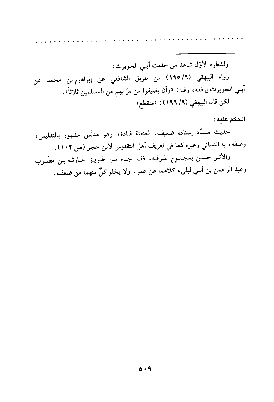 والأثر حسن بمجموع طرقه، فقد جاء من طريق حارثة بن مضرّب وعبد الرحمن بن أبي ليلى، كلاهما عن عمر، ولا يخلو كلٌ منهما من ضعف.