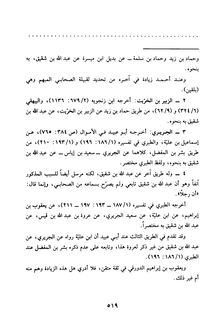 2 - الزبير بن الخرّيت: أخرجه ابن زنجويه (2/ 679: 1136)، والبيهقي (6/ 324) و (9/ 62)، من طريق حَمَّادُ بْنُ زَيْدٍ عَنِ الزُّبَيْرِ بْنِ الْخِرِّيتِ، عن عبد الله بن شقيق به بنحوه.
