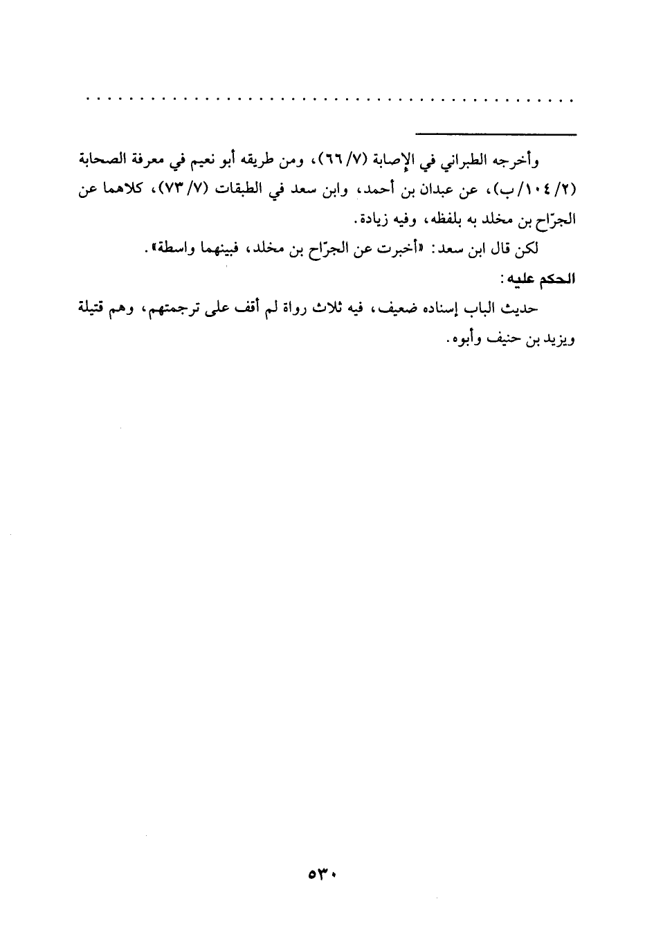لكن قال ابن سعد: "أخبرت عن الجرّاح بن مخلد، فبينهما واسطة".