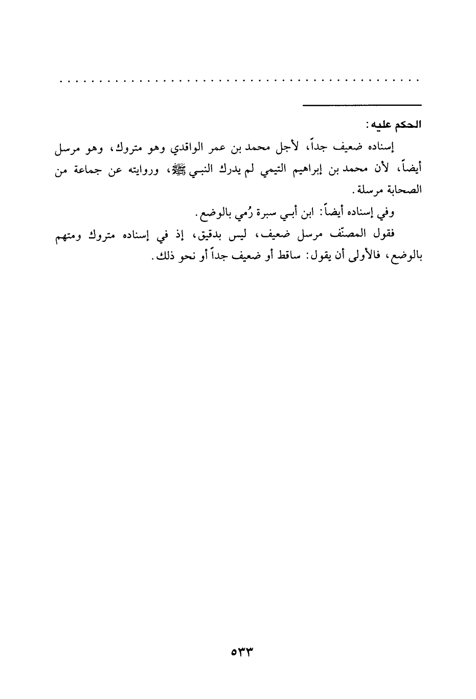 فقول المصنف مرسل ضعيف، ليس بدقيق، إذ في إسناده متروك ومتهم بالوضع، فالأولى أن يقول: ساقط أو ضعيف جدًا أو نحو ذلك.