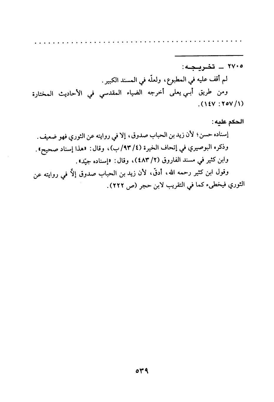 وقول ابن كثير رحمه الله، أدقّ, لأن زيد بن الحباب صدوق إلَّا في روايته عن الثوري فيخطىء كما في التقريب لابن حجر (ص 222).