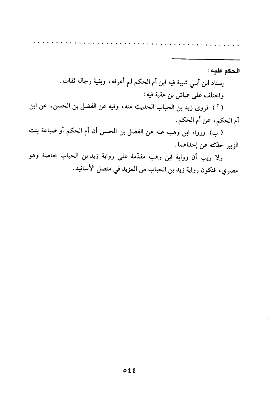 (أ) فروى زيد بن الحباب الحديث عنه، وفيه عن الفضل بن الحسن، عن ابن أم الحكم، عن أم الحكم.