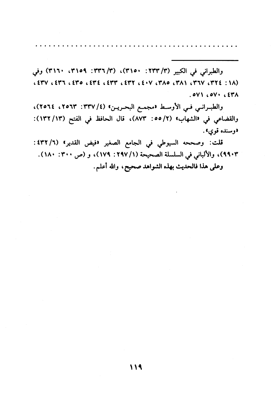 قلت: وصححه السيوطي في الجامع الصغير"فيض القدير" (6/ 432: 9903)، والألباني في السلسلة الصحيحة (1/ 297: 179)، و (ص 300: 180).