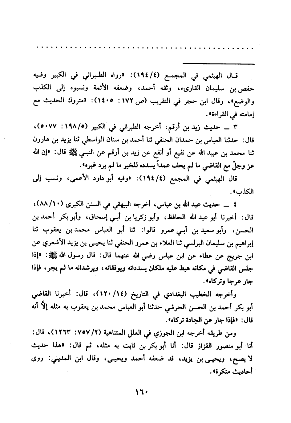 3 - حديث زيد بن أرقم، أخرجه الطبراني في الكبير (5/ 198: 5077) , قال: حدّثنا العباس بن حمدان الحنفي ثنا أحمد بن سنان الواسطي ثنا يزيد بن هارون ثنا محمَّد بن عبيد الله عن نفيع أو أنفع عن زيد بن أرقم عَنِ النَّبِيِّ -صَلَّى اللَّهُ عَلَيْهِ وَسَلَّمَ- قَالَ: "إن الله عز وجل مع القاضي ما لم يحف عمدًا يسدده للخير ما لم يرد غيره".