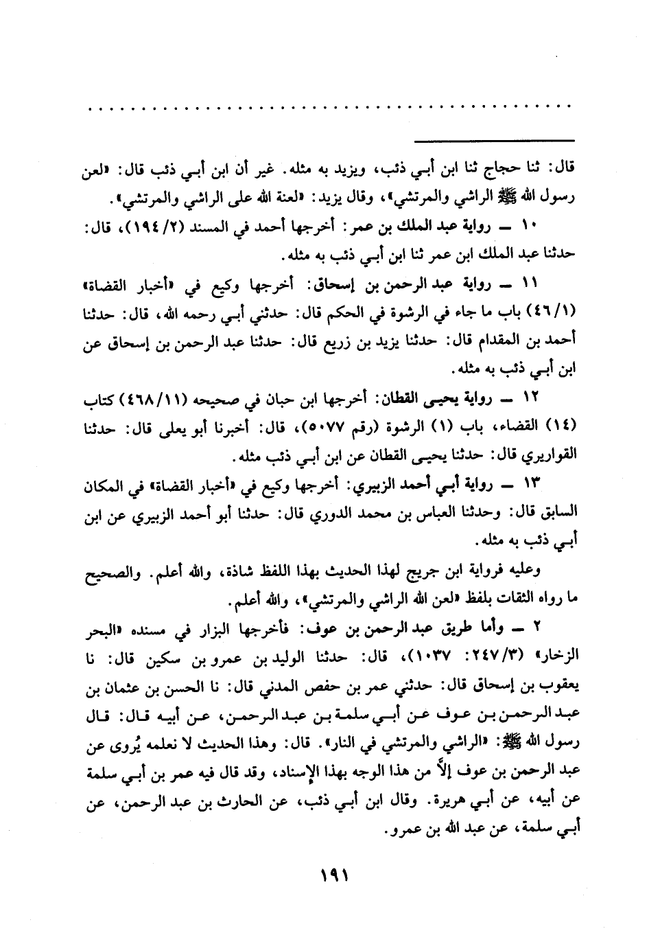 12 - رواية يحيى القطان: أخرجها ابن حبّان في صحيحه (11/ 468) كتاب (14) القضاء، باب (1) الرشوة (رقم 5077)، قال: أخبرنا أبو يعلى قال: حدّثنا القواريري قال: حدّثنا يحيى القطان عن ابن أبي ذئب مثله.