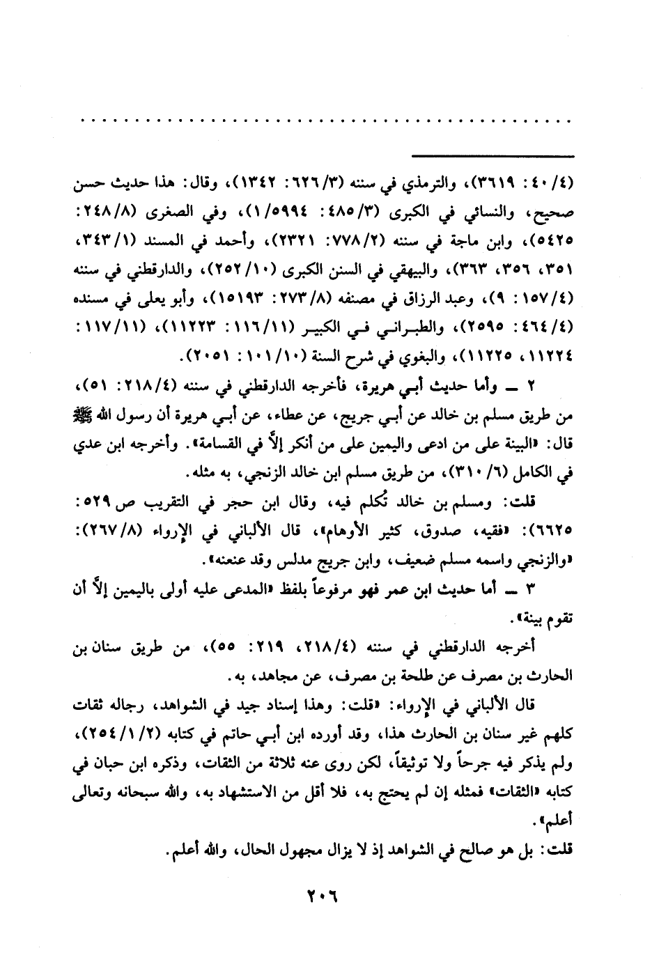 2 - وأما حديث أبي هريرة، فأخرجه الدارقطني في سننه (4/ 218: 51)، من طريق مسلم بن خالد عن أبي جريج، عن عطاء، عَنْ أَبِي هُرَيْرَةَ أَنَّ رَسُولَ اللَّهِ -صَلَّى الله عليه وسلم- قال: "البينة على من ادعى واليمين على من أنكر إلَّا في القسامة". وأخرجه ابن عدي في الكامل (6/ 310)، من طريق مسلم ابن خالد الزنجي، به مثله.