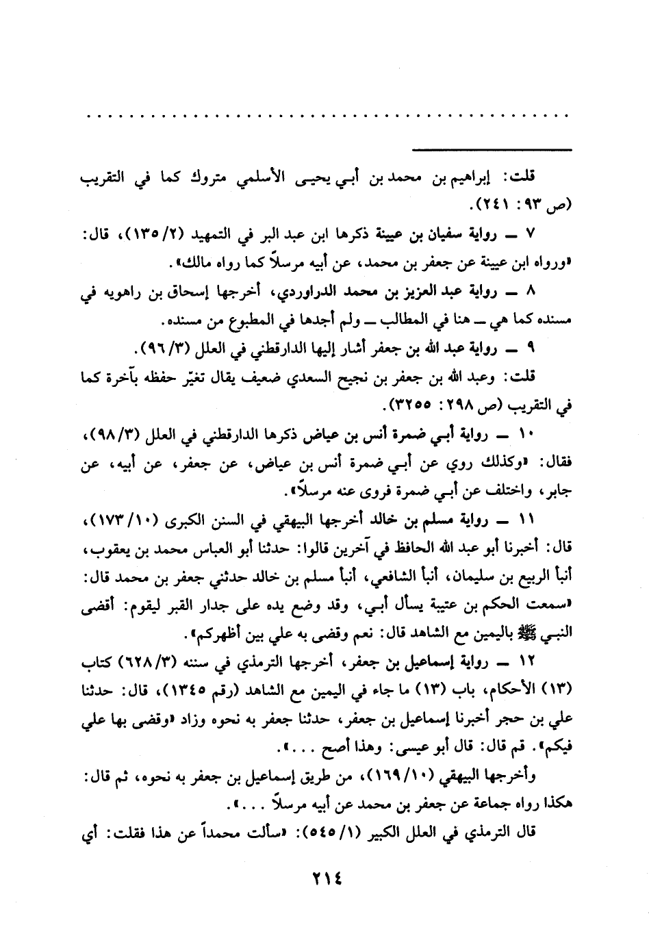 12 - رواية إسماعيل بن جعفر، أخرجها الترمذي في سننه (3/ 628) كتاب (13) الأحكام، باب (13) ما جاء في اليمين مع الشاهد (رقم 1345)، قال: حدّثنا علي بن حجر أخبرنا إسماعيل بن جعفر، حدّثنا جعفر به نحوه وزاد "وقضى بها علي فيكم". قم قال: قال أبو عيسى: وهذا أصح ... ".