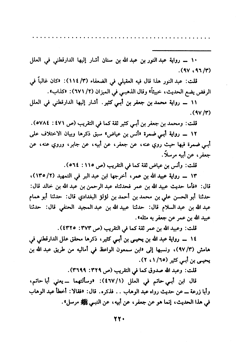 14 - رواية عَبْدُ اللَّهِ بْنُ يَحْيَى بْنِ أَبِي كَثِيرٍ، ذكرها محقق محلل الدارقطني في هامش (3/ 97)، ونسبها إلى "ابن سمعون الواعظ في أماليه من طريق عَبْدُ اللَّهِ بْنُ يَحْيَى بْنِ أَبِي كَثِيرٍ (65/ 1، 2).