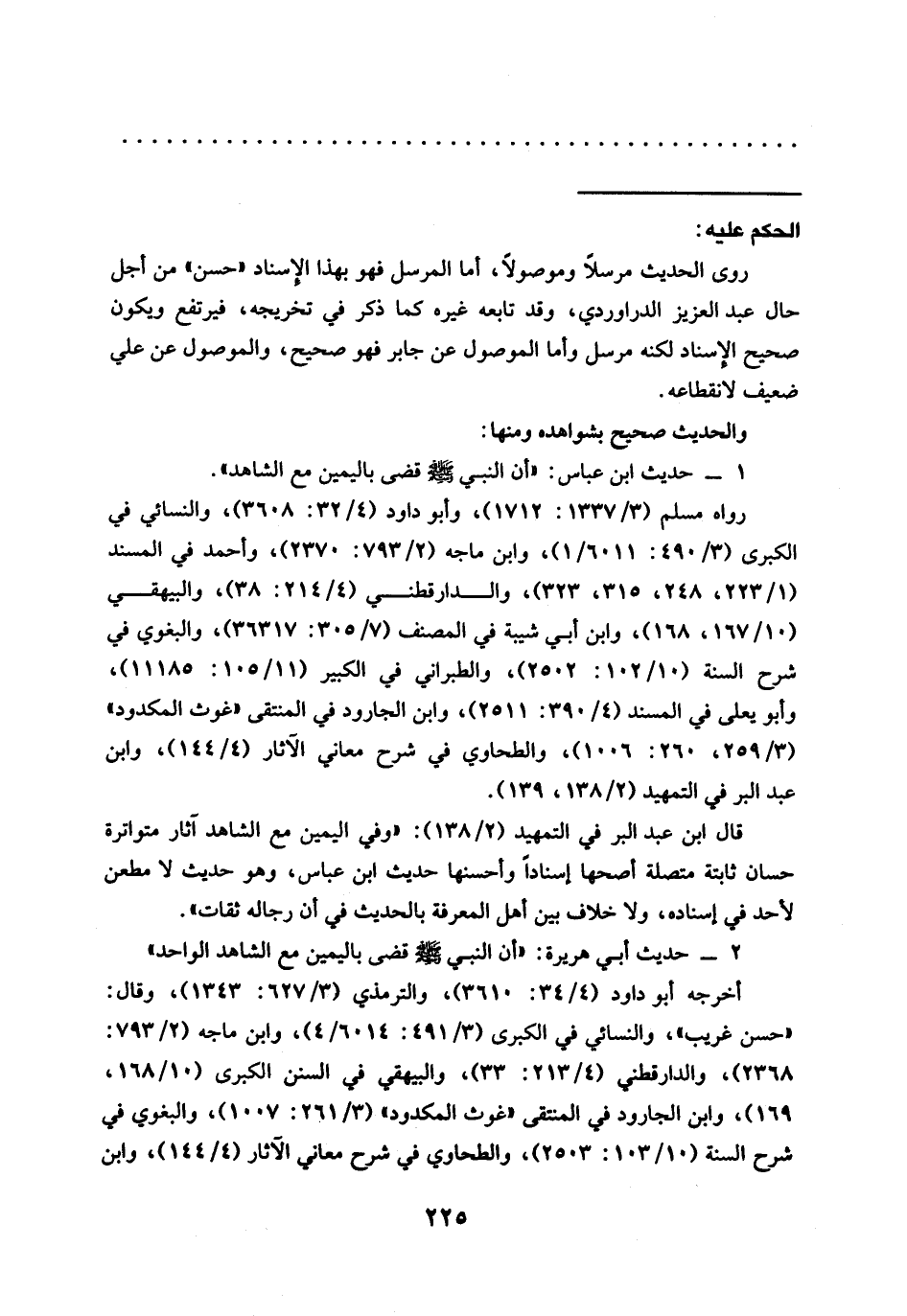 1 - حديث ابْنِ عَبَّاسٍ: "أَنَّ النَّبِيَّ -صَلَّى اللَّهُ عَلَيْهِ وسلم- قضى باليمين مع الشاهد".