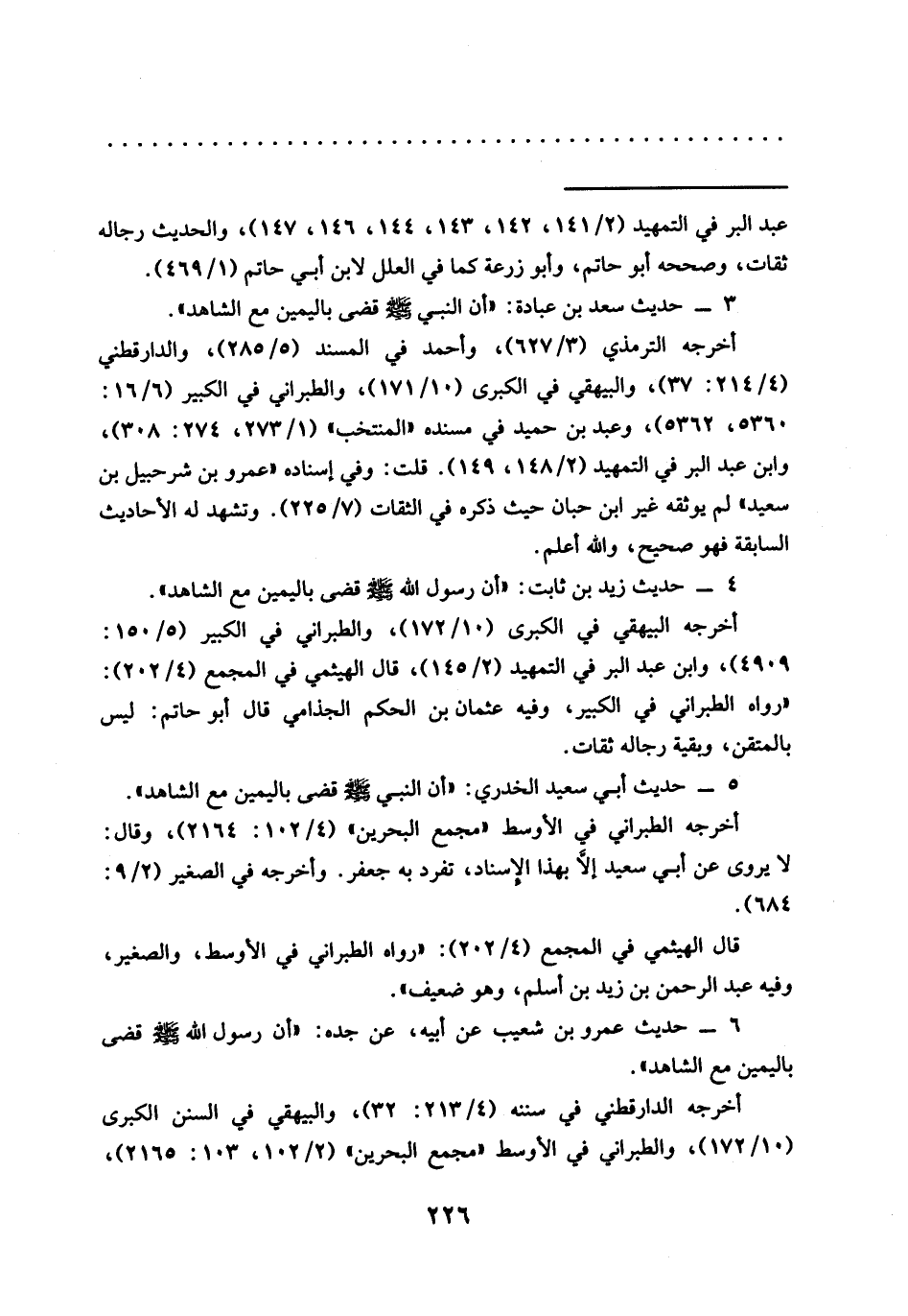 6 - حديث عَمْرِو بْنِ شُعَيْبٍ عَنْ أَبِيهِ، عَنْ جَدِّهِ: "أن رسول الله -صلى الله عليه وسلم- قضى باليمين مع الشاهد".