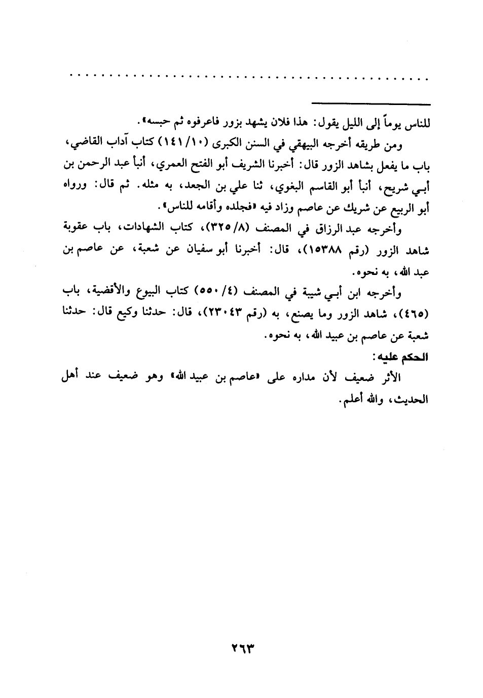 وأخرجه ابن أبي شيبة في المصنف (4/ 550) كتاب البيوع والأقضية، باب (465)، شاهد الزور وما يصنع، به (رقم 23043)، قال: حدّثنا وكيع قال: حدّثنا شعبة عن عاصم بن عبيد الله، به نحوه.
