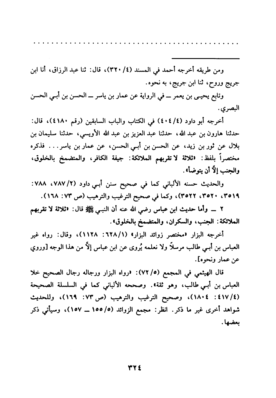 أخرجه أبو داود (4/ 404) في الكتاب والباب السابقين (رقم 4180)، قال: حدّثنا هارون بن عبد الله، حدّثنا عبد العزيز بن عبد الله الأويسي، حدّثنا سليمان بن بلال عن ثور بن زيد، عن الحسن بن أبي الحسن، عن عمار بن ياسر ... فذكره مختصرًا بلفظ: "ثلاثة لا تقربهم الملائكة: جيفة الكافر، والمتضمخ بالخلوق، والجنب إلَّا أن يتوضأ".