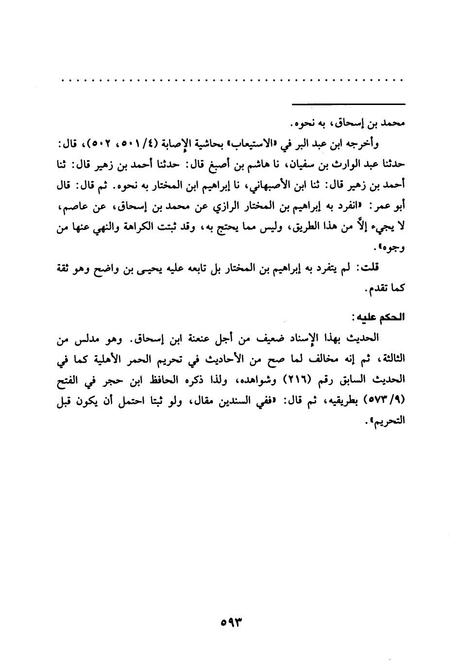 وأخرجه ابن عبد البر في "الاستيعاب" بحاشية الإصابة (4/ 501، 502)، قال: حدّثنا عبد الوارث بن سفيان، نا هاشم بن أصبغ قال: حدّثنا أحمد بن زهير قال: ثنا أحمد بن زهير قال: ثنا ابن الأصبهاني، نا إبراهيم ابن المختار به نحوه. ثم قال: قال أبو عمر: "انفرد به إبراهيم بن المختار الرازي عن محمَّد بن إسحاق، عن عاصم، لا يجيء إلَّا من هذا الطريق، وليس مما يحتج به، وقد ثبتت الكراهة والنهي عنها من وجوه".
