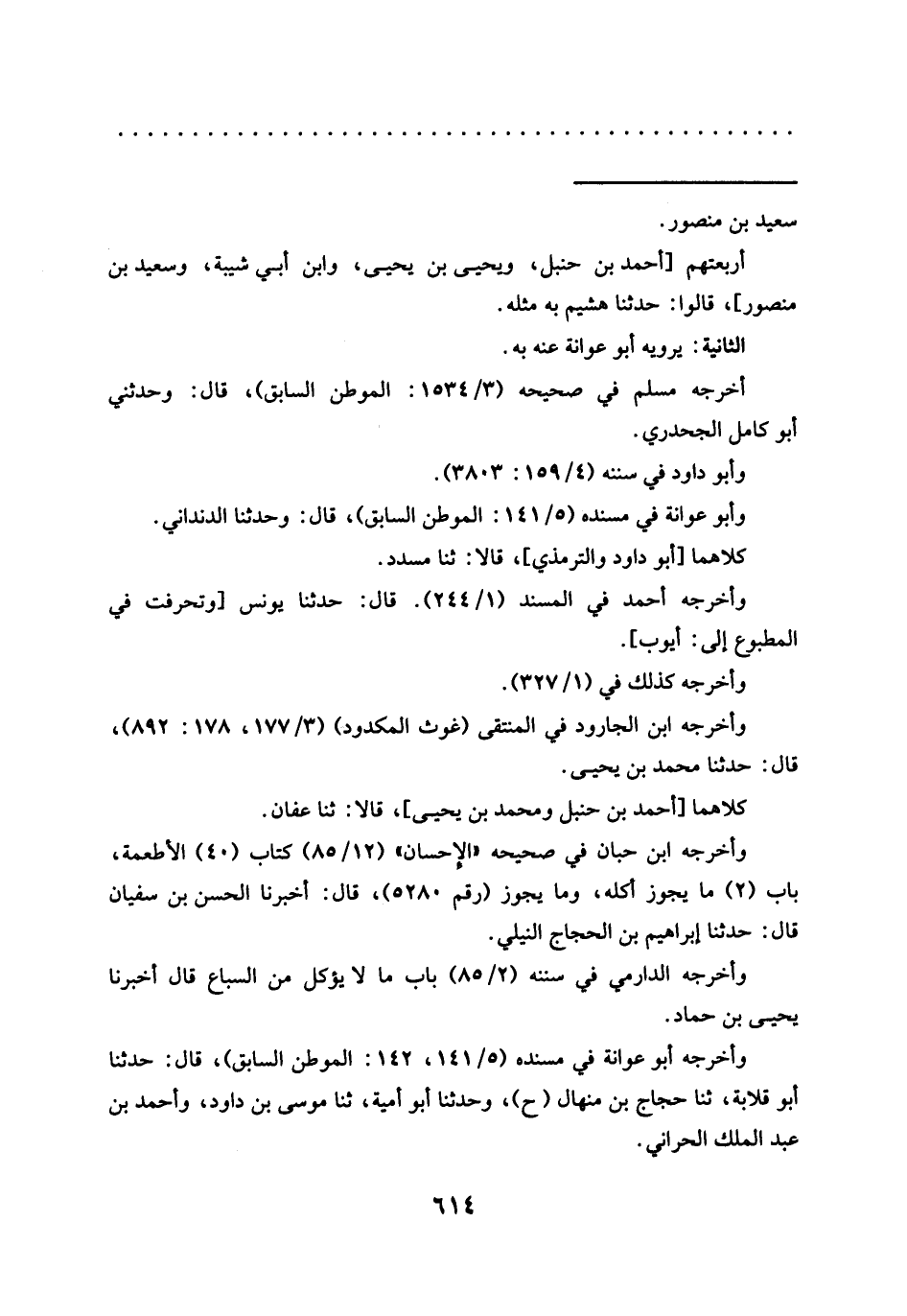 أربعتهم [أحمد بن حنبل، ويحيى بن يحيي، وابن أبي شيبة، وسعيد بن منصور]، قالوا: حدّثنا هشيم به مثله.