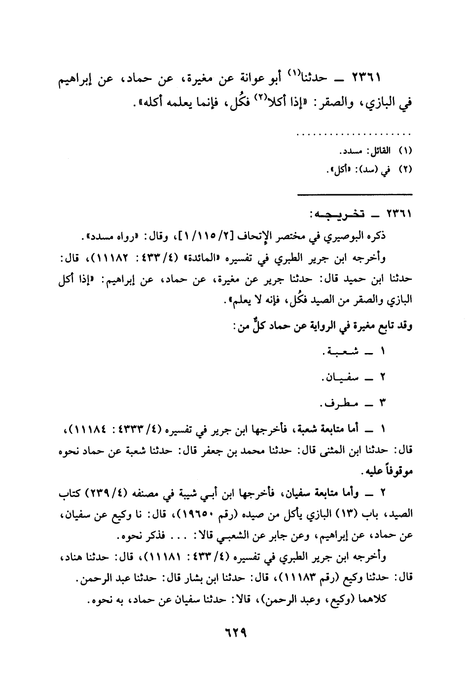 2361 - حَدَّثَنَا أَبُو عَوَانَةَ عَنْ مُغِيرَةَ عَنْ حَمَّادٍ عَنْ إِبْرَاهِيمَ فِي §الْبَازِيِّ وَالصَّقْرِ إِذَا أَكَلَا فَكُلْ فَإِنَّمَا يُعَلِّمُهُ أَكْلَهُ