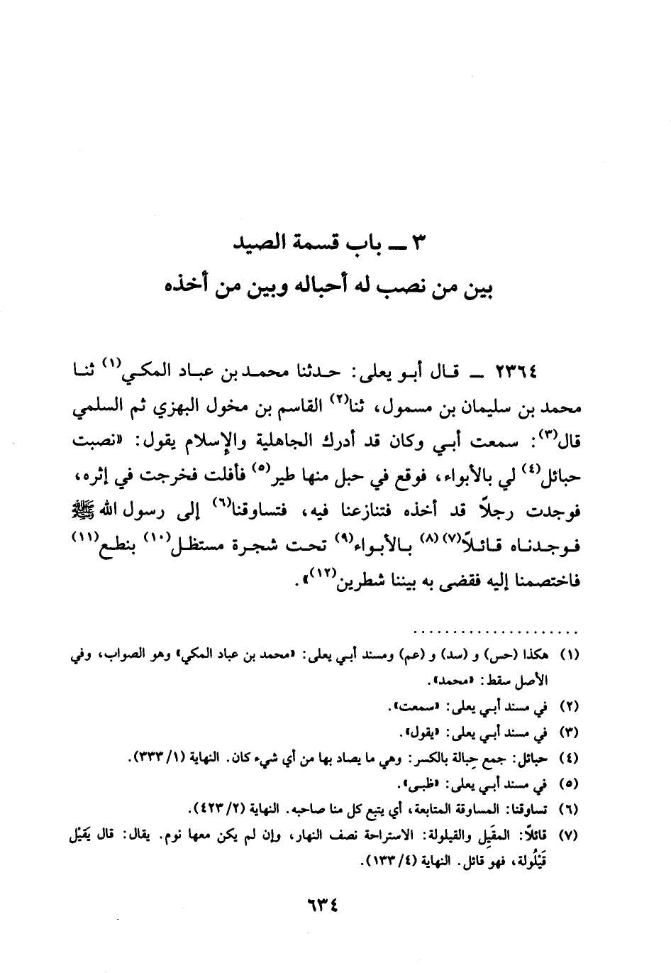 (3 - بَابُ قِسْمَةِ الصَّيْدِ بَيْنَ مَنْ نَصَبَ لَهُ أَحْبَالَهُ وَبَيْنَ مَنْ أَخَذَهُ)