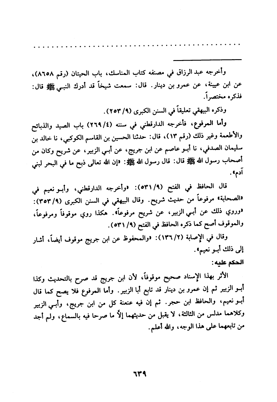 قال الحافظ في الفتح (9/ 531): "وأخرجه الدارقطني، وأبو نعيم في "الصحابة" مرفوعًا من حديث شريح. وقال البيهقي في السنن الكبرى (9/ 353): "وروي ذلك عن أبي الزبير، عن شريح مرفوعًا". هكذا روي موقوفًا ومرفوعًا، والموقوف أصح كما ذكره الحافظ في الفتح (9/ 531).